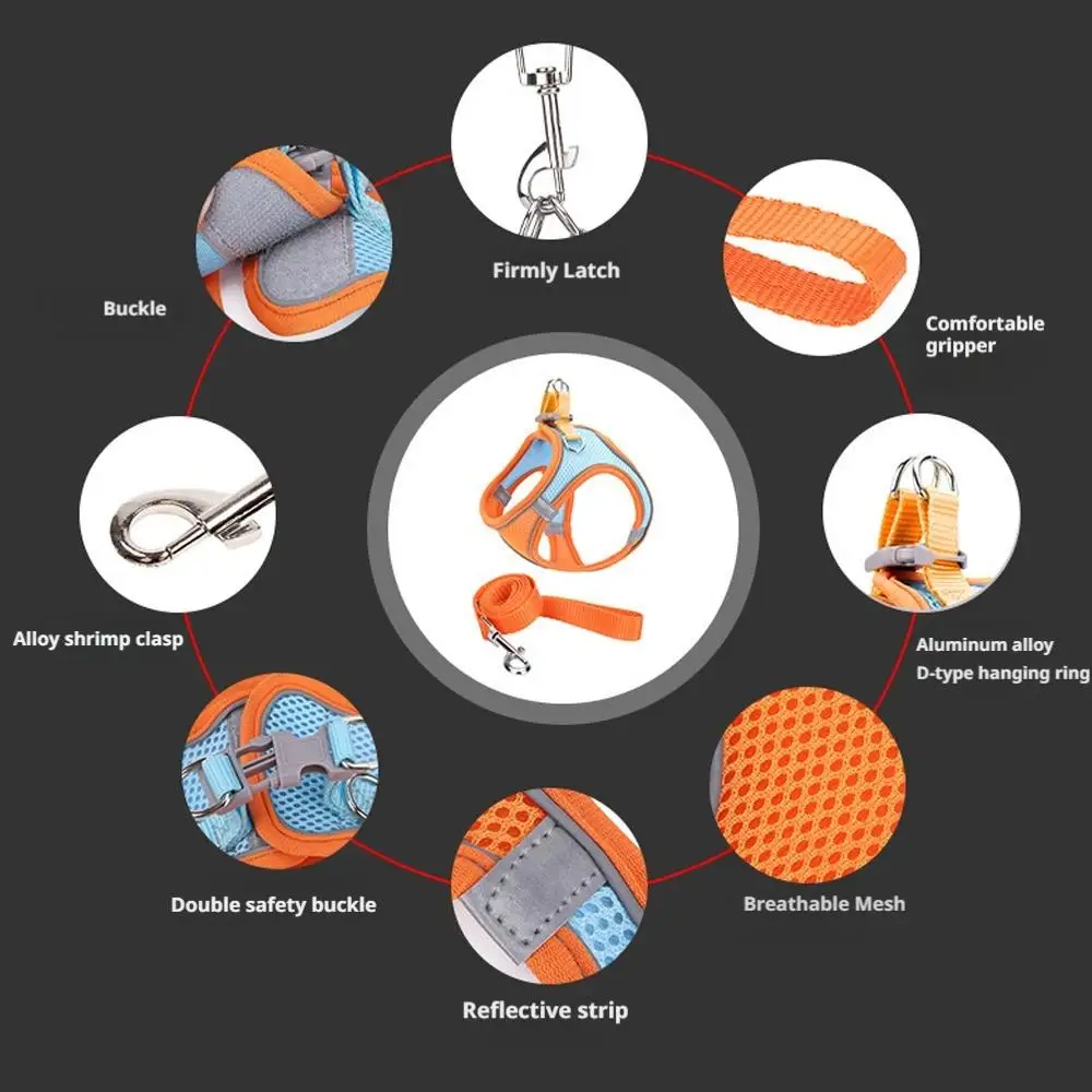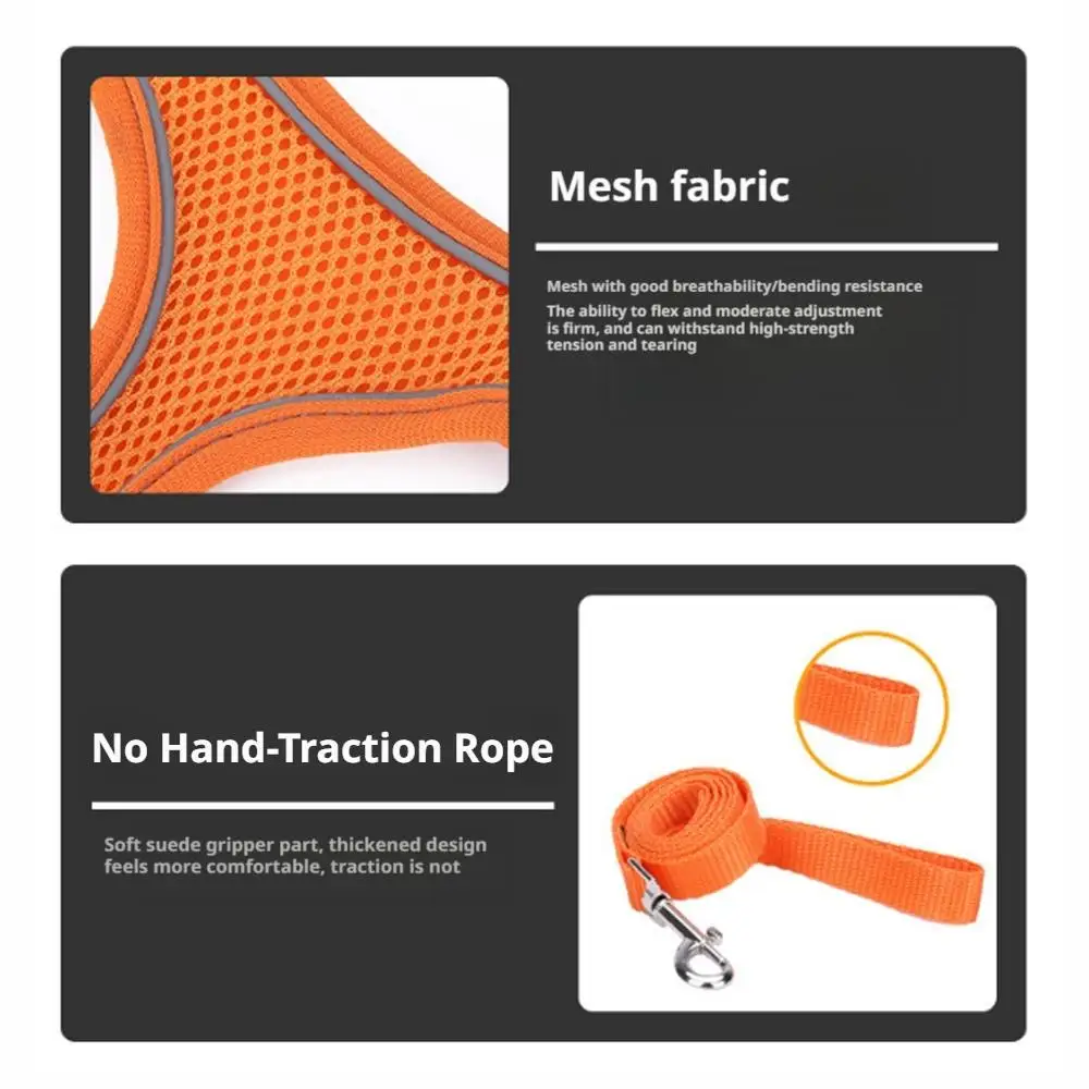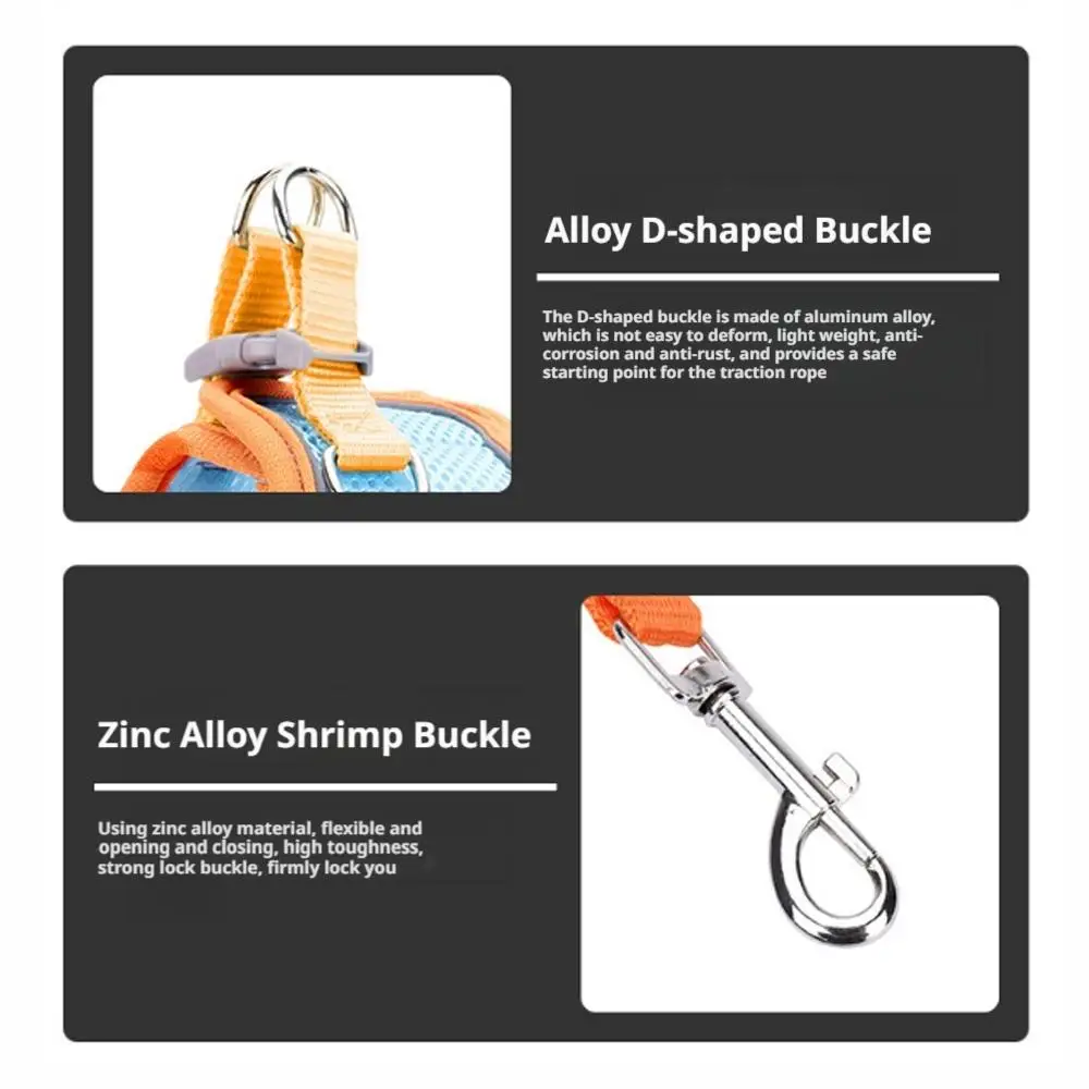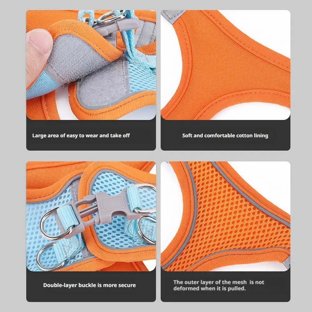 1. Comfort: The chest and back traction design of pets is reasonable, which can evenly distribute force, reduce pressure on the pet's neck, and make the pet more comfortable to wear.